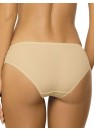 Culotte classique en tissu tricoté lisse. Ruban délicat avec décoration sur le devant du sous-vêtement, Le gousset en coton garantit le confort de port.