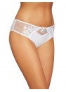 Une culotte phénoménale, lisse à l'arrière et charmante en dentelle à l'avant. Dentelle en maille, complétée par une jolie broderie florale visible plus près du centre de la lingerie, avec un délicat effet de transparence. Un petit nœud au sommet.