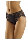 Culotte de bon goût dans un beau style décoré d'une délicate dentelle. La dentelle souligne la ligne des fesses ainsi que des cuisses et de la taille, créant une forme cohérente et galbée avec un tissu doux et élastique. Cette culotte est le parfait sous-vêtement de tous les jours, qui se distingue par un style extrêmement féminin. Haute qualité.