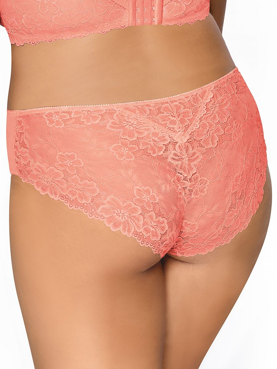 Subtile, culotte féminine. - en dentelle florale - façade décorée d'un minuscule arc - inserts de tulle en maille sur les côtés - dentelle arrière - bords terminés par un lacet en caoutchouc