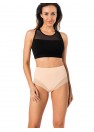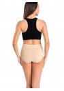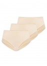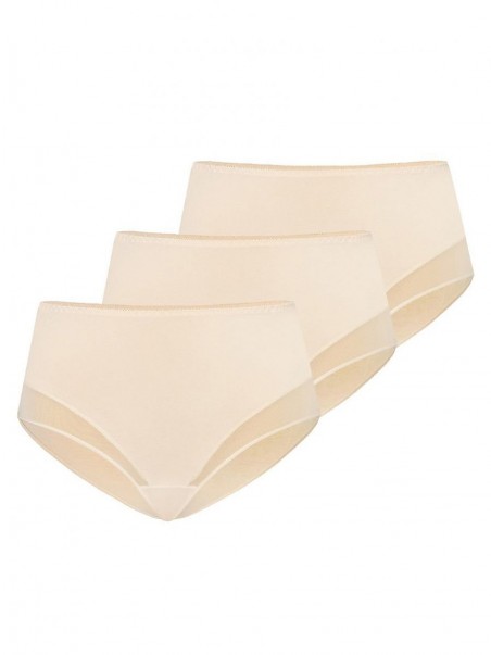 Un lot de trois culottes féminines à taille haute de couleur beige. Les slips de cet ensemble sont très populaires en raison de leur coupe et de leur prix attractif. La culotte taille haute masque les imperfections de la femme, le ventre proéminent, et la couleur beige est invisible sous les vêtements blancs. Un lot de culottes est une idée de cadeau idéale pour l'élue de votre cœur.