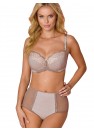 Élégante culotte de couleur moka à la coupe haute et ample, en tricot à motifs, dentelle délicate et maille.