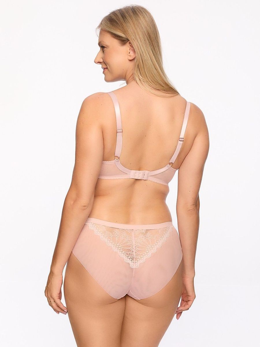 Culottes sensuelles et élégantes qui allient délicatesse et confort. Le modèle se distingue par des ornements subtils en dentelle et en résille qui lui confèrent légèreté et charme féminin. Le dos des culottes, réalisé en double tulle transparent, est orné d'une finition décorative qui met en valeur les formes. La bande élastique plate à la taille assure un confort de port et ne se marque pas sous les vêtements, tandis qu'un joli nœud ajoute une touche romantique aux culottes. La doublure intérieure en coton assure hygiène et confort tout au long de la journée.