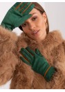 Élégants gants de femme en tissu lisse avec empiècements contrastés entre les doigts. Bretelles décoratives tressées contrastées aux poignets. Pouce et index avec fleur brodée, permettant d'utiliser le téléphone sans enlever les gants.