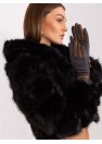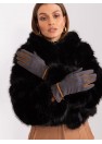 Élégants gants de femme en tissu lisse avec empiècements contrastés entre les doigts. Bretelles décoratives tressées contrastées aux poignets. Pouce et index avec fleur brodée, permettant d'utiliser le téléphone sans enlever les gants.