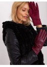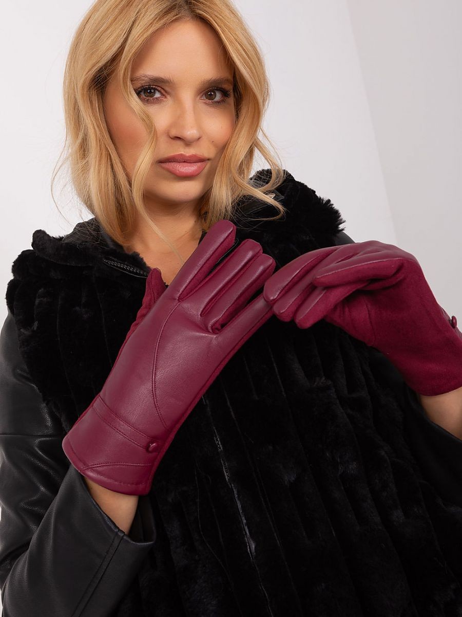 Gants élégants pour femmes, fabriqués à partir d'une combinaison de deux matériaux différents. Bretelles décoratives avec boutons aux poignets. L'index est orné d'une fleur brodée, ce qui permet d'utiliser le téléphone sans avoir à retirer les gants.