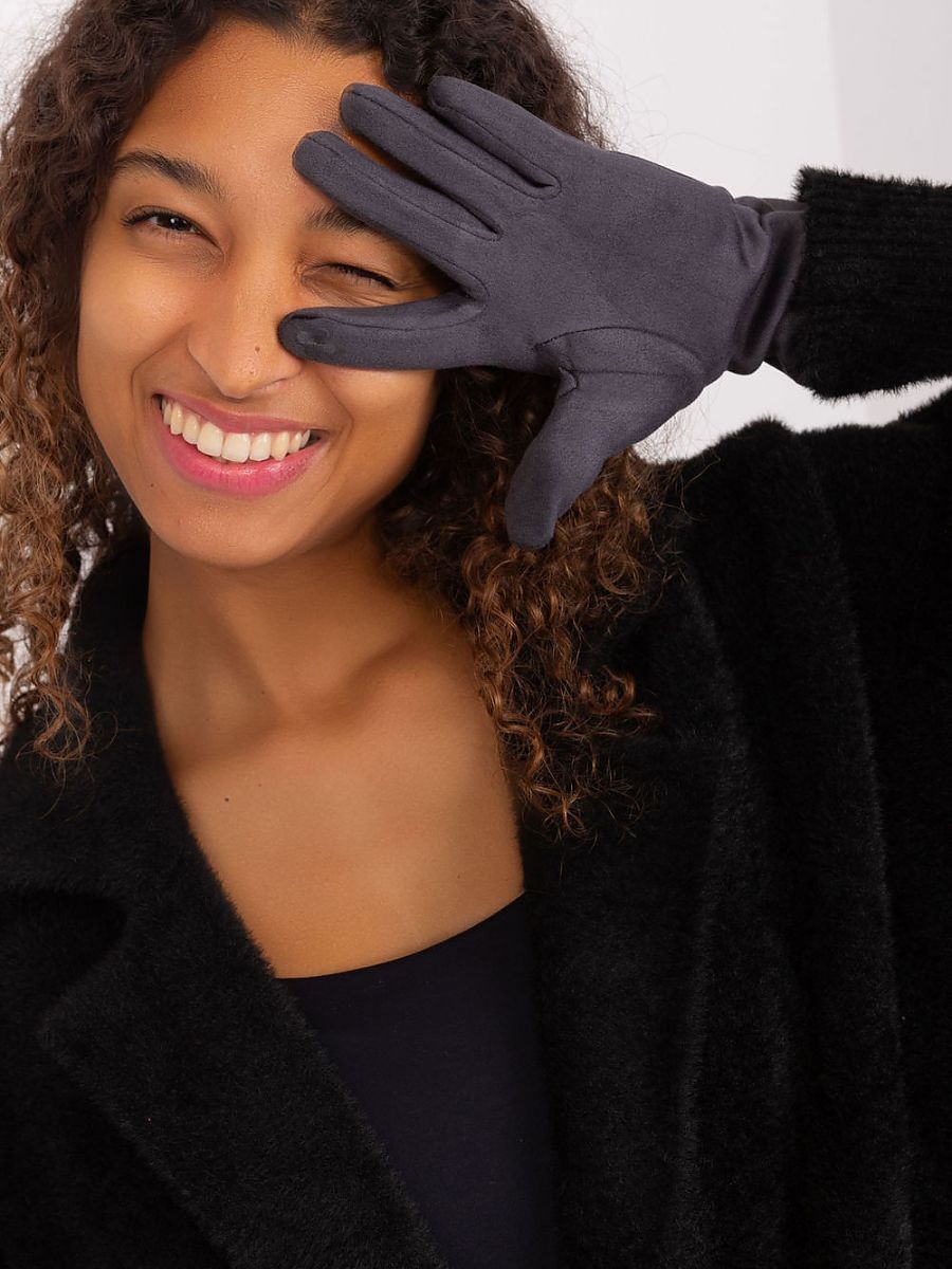 Gants élégants pour femmes en tissu lisse et isolant. L'index est orné d'une fleur brodée, ce qui vous permet d'utiliser votre téléphone sans avoir à retirer les gants.