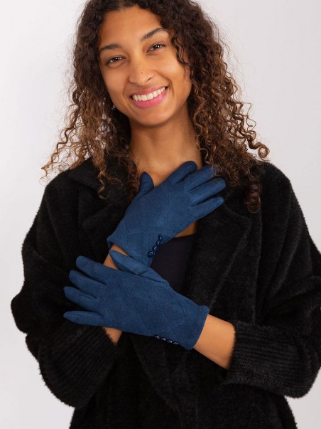 Gants élégants pour femme en tissu à motif géométrique décoratif. Boutons décoratifs aux poignets. Index avec fleur brodée, permettant d'utiliser le téléphone sans enlever les gants.