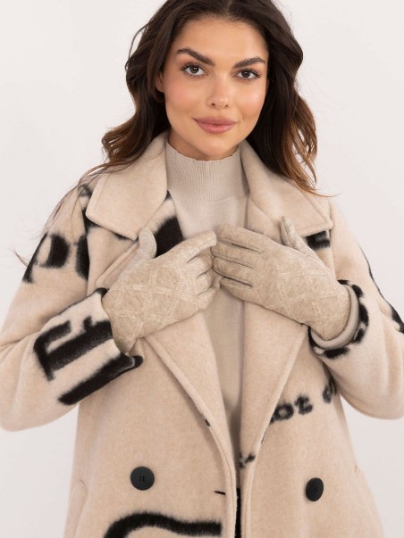 Gants élégants pour femmes en tissu isolant avec motif géométrique décoratif. L'index est orné d'une fleur brodée, ce qui vous permet d'utiliser votre téléphone sans avoir à retirer les gants.