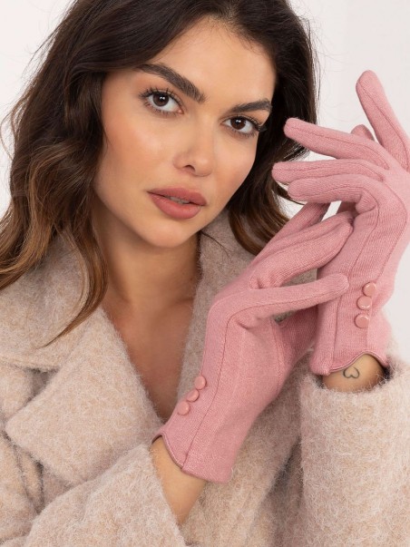 Élégants gants pour femmes en matériau lisse et isolant. Boutons décoratifs aux poignets. Index avec fleur brodée, permettant d'utiliser un téléphone sans enlever les gants.