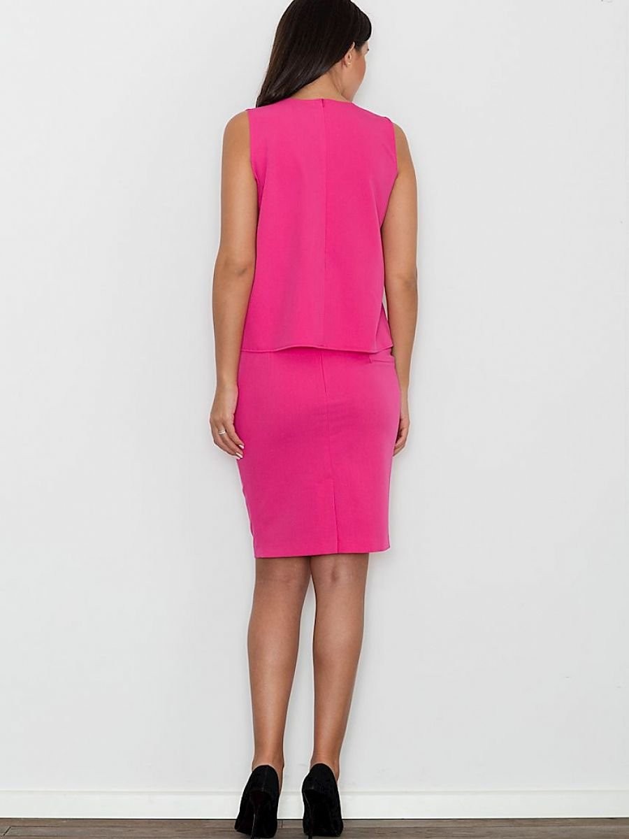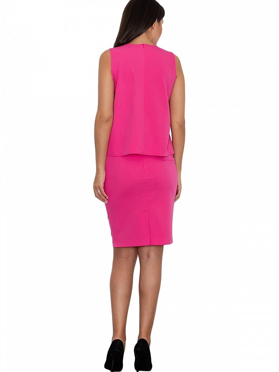 Un ensemble élégant dans une version simple. Un chemisier avec un accent doré décoratif ajoute du chic et de la modernité. Jupe ajustée jusqu'au genou avec inserts en cuir écologique, fermeture éclair couverte. Cet ensemble est parfait pour de nombreuses occasions de la journée et de la soirée.