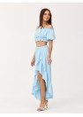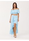 L'ensemble chemisier et jupe asymétrique est fabriqué dans un tissu doux et agréable qui apportera du confort aux femmes les plus exigeantes. L'ensemble se compose d'un haut court et d'une jupe asymétrique. Le haut présente de belles épaules ouvertes et des volants à la taille et à l'encolure. La jupe, quant à elle, impressionne par sa magnifique coupe asymétrique, ses volants sur le devant et sa taille élastique qui s'adapte à toutes les silhouettes. L'ensemble d'été convient parfaitement à tous les types de beauté, car il est disponible dans une large gamme de couleurs. Le produit est fabriqué et cousu en Pologne.