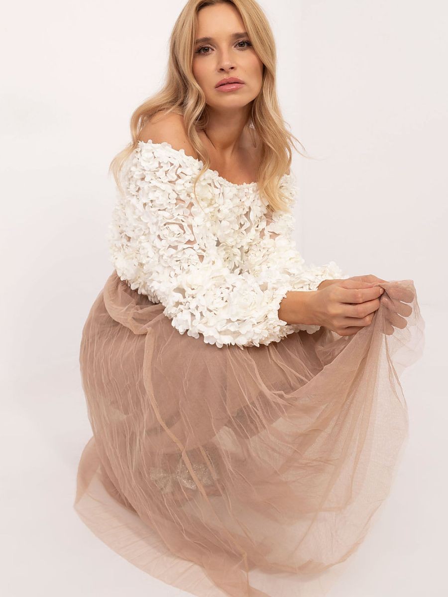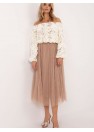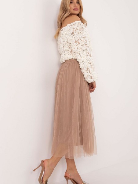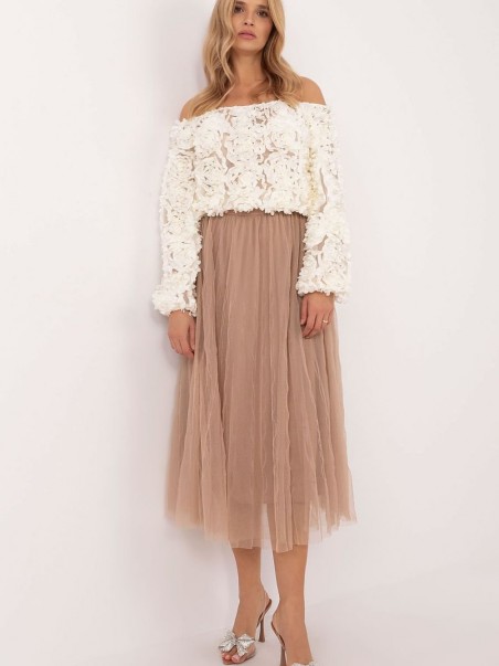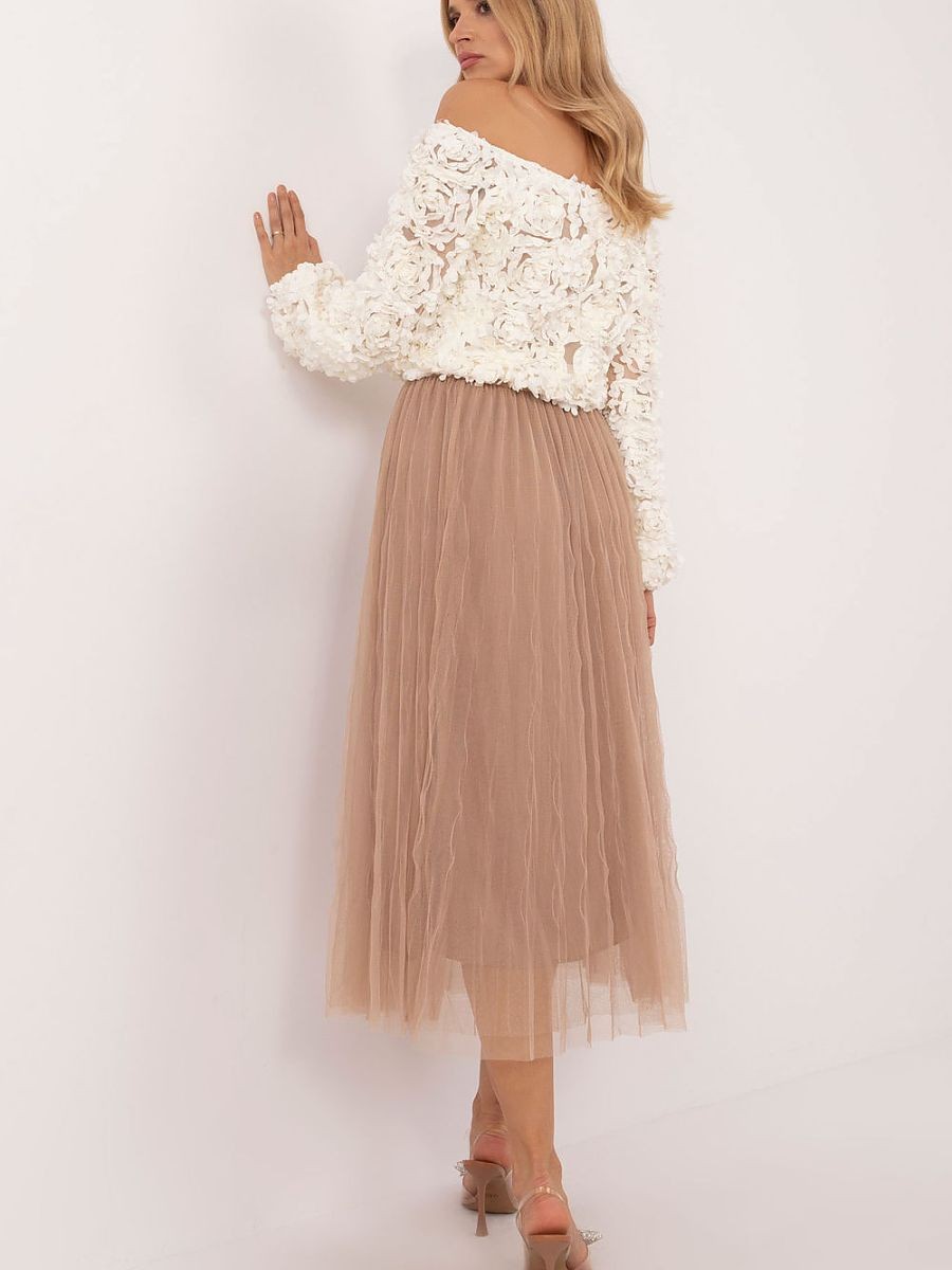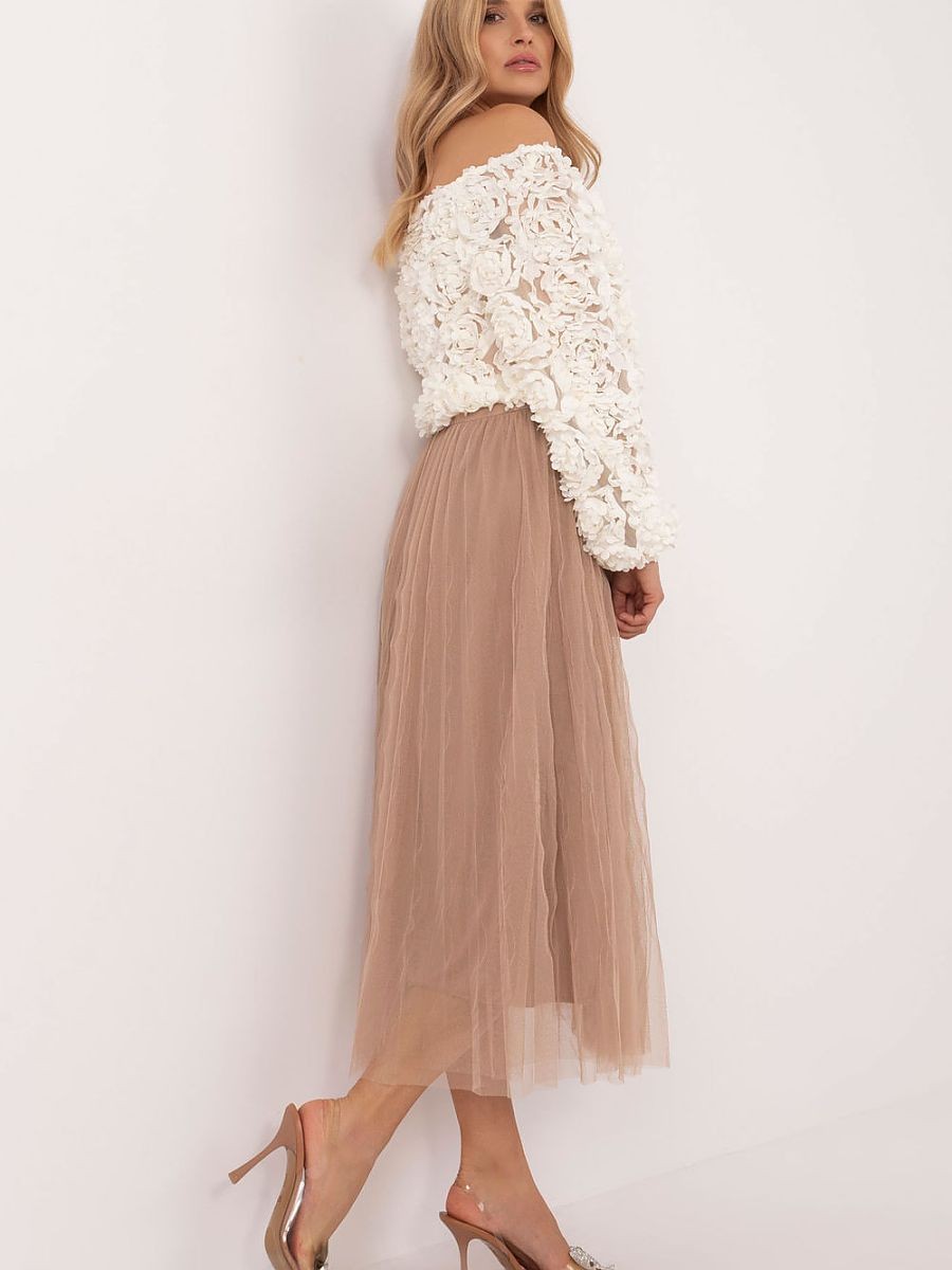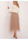 La jupe en tulle de style décontracté est le choix idéal pour les sorties quotidiennes et le travail. Fabriquée en polyester léger et fluide, avec un motif lisse, elle allie élégance et confort. La jupe midi présente une allure féminine et stylée, tandis que la ceinture élastique assure un port confortable et un ajustement parfait à la silhouette. L'absence de fermeture souligne en outre la simplicité et la fonctionnalité du modèle. La jupe est doublée pour plus de confort et pour éviter la transparence, ce qui en fait un excellent choix pour tous les jours.