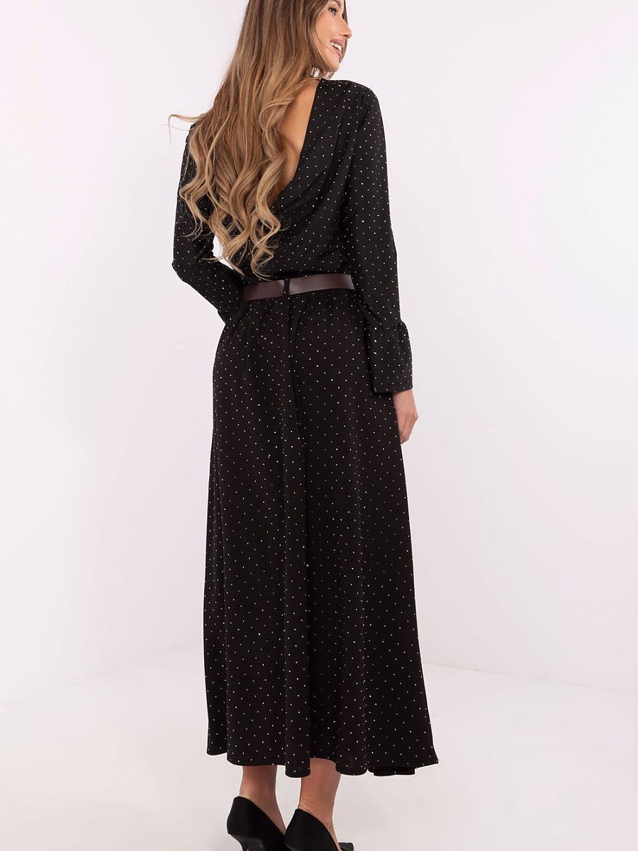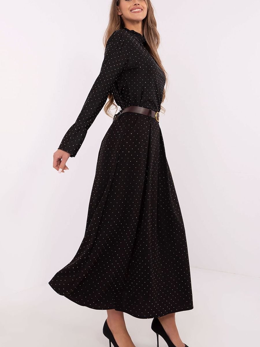 La jupe longue maxi élégante est un mélange de confort et de style raffiné, idéale pour les sorties quotidiennes, le travail ou les occasions spéciales. Fabriquée à partir d'un mélange de polyester et de viscose de haute qualité, la jupe assure légèreté et confort, tout en offrant un look élégant qui conviendra à toutes les situations. À l'arrière de la taille, il y a une bande élastique qui garantit un ajustement parfait et un confort, tandis que la ceinture permet d'ajuster et de souligner davantage la taille. Le tout est orné de strass subtils qui couvrent toute la surface du tissu, donnant à la jupe un éclat et une originalité uniques. De plus, les poches insérées sont un élément pratique, alliant fonctionnalité et allure à la mode. C'est une excellente proposition pour des styles élégants qui se démarqueront par leur simplicité et leur détail efficace. La jupe se marie parfaitement avec des chemisiers classiques ainsi qu'avec des hauts plus audacieux, offrant d'innombrables possibilités pour créer des ensembles élégants mais confortables.