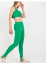 Leggings verts à taille haute, avec une large ceinture élastique. Idéal pour de nombreux styles.
