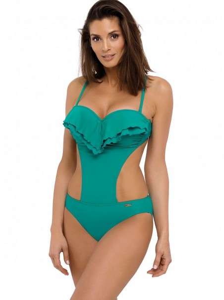 Laissez-vous séduire par les rythmes latinos chauds ! Portez un maillot de bain inspiré du style cubain le plus en vogue cet été. Le monokini une pièce présente des découpes sur les côtés, ce qui lui donne un caractère moderne. Le haut du maillot est constitué d'un push-up sexy et de bonnets de forme précise, rembourrés d'une mousse spéciale, avec un remplissage push-up intégré, permanent et non amovible (le push-up existe dans toutes les tailles du maillot). La coupe soulève et agrandit les seins, créant un décolleté sexy, agrémenté d'un volant aérien. Et ce n'est pas tout. Le maillot de bain est fabriqué en tissu stretch italien, il est lisse, confortable, se noue dans le dos et possède des bretelles entièrement détachables. Les couleurs succulentes sont disponibles dans une douzaine de variantes - choisissez-le dans votre couleur préférée.