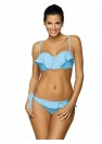 Joli maillot de bain deux pièces décoré des volants aériens à la mode cette saison. Avec un nœud doré au centre de l'encolure. Fond de coupe brésilienne. Si vous rêvez d'une poitrine large, ferme et sexy, joliment ramassée sur le décolleté, cette proposition est faite pour vous. Le maillot de bain a un aspect doux et innocent, il est disponible dans de nombreuses couleurs attrayantes et dans un tissu souple et élastique. Le soutien-gorge se distingue par une merveilleuse construction destinée aux poitrines petites et moyennes - il est rembourré et possède un assez grand rembourrage push up, placé en permanence dans le soutien-gorge. Sangles réglables et détachables, idéales pour le bronzage du corps. Circuit fermé par une boucle. La culotte est sexy, nouée sur les côtés brazyliens avec un volant en haut. Pour un effet complet, le bas doit être tiré vers le haut des hanches de façon à ce que sa forme triangulaire décore joliment le bas, qui dépasse partiellement le contour du bas. - la construction pousse parfaitement les seins vers le haut et les agrandit optiquement en même temps. - idéal pour les bustes petits et moyens - bonnets rembourrés - câblage latéral et inférieur - au milieu du soutien-gorge un noeud doré (broche), non amovible - bretelles de longueur réglable, avec possibilité de les retirer complètement du soutien-gorge - sangle élastique, fermée par une boucle - slip à volants, noué sur les côtés - coupe brésilienne à la mode - la culotte doit être serrée sur le haut des hanches de façon à ce que sa forme triangulaire décore joliment les fesses. - maillot de bain dans les plus belles couleurs de l'été, met par
