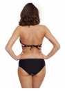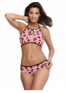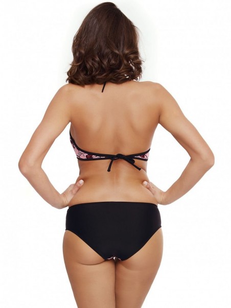 Un maillot de bain deux pièces à la mode et intéressant avec un haut intégré. Il est fabriqué en tissu mat à motifs. Le bas du soutien-gorge est doté de bonnets triangulaires, renforcés par de la mousse et complétés par un push-up, de sorte que la poitrine est correctement froncée et modelée. Le push-up est présent dans toutes les tailles de maillot de bain et ne peut être retiré du modèle. Le soutien-gorge se noue confortablement au dos et au cou. La culotte est dotée de plis latéraux séduisants. Motif devant, uni derrière, et juste la bonne hauteur (ni trop basse, ni trop haute) pour être parfaite pour la plage. Un style sportif avec un soupçon d'ethno...