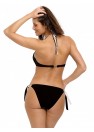 Maillot de bain deux pièces dont la coupe est similaire à celle d'un bikini. En noir et blanc, il est élégant et tentant. Il est également très beau sur une peau bronzée. Soutien-gorge noir lisse à double bretelles, noué au cou. Le circuit est fixé à l'arrière. La construction rembourrée, avec push-up et armatures, fronce instantanément, rapproche les seins et les agrandit optiquement, créant un look féminin désirable sur la plage. Le push-up existe en tailles S, M, L et est amovible du soutien-gorge. La culotte a des bretelles élégantes et fines, également nouées, cette fois de part et d'autre des hanches. Le maillot est cousu dans un tissu italien de haute qualité. La dernière collection de l'été 2019.