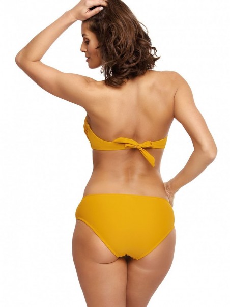 Cameron M-523 est un maillot de bain deux pièces d'une belle couleur, orné de bijoux élégants. Le soutien-gorge bandeau possède des bonnets rembourrés (sans push-up) enrichis d'armatures, grâce auxquelles il dessine joliment le décolleté et maintient les seins dans la bonne position. La coupe fronce joliment les seins, ce qui est parfait pour la plage. La sangle passe par le cou et est détachable. Le maillot de bain a un élastique noué dans le dos. La culotte est très confortable, le devant est décoré d'une lanière ornée de bijoux. Il est fabriqué dans un tissu italien de haute qualité, ce qui le rend très élégant. Choisissez-le et vous passerez certainement des vacances réussies !
