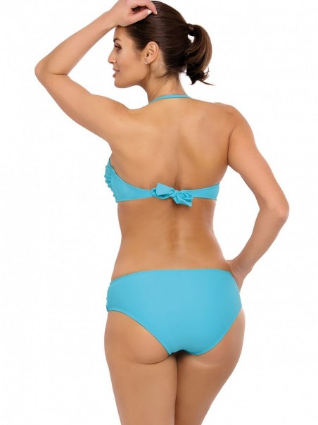 Cameron M-523 est un maillot de bain deux pièces d'une belle couleur, orné de bijoux élégants. Le soutien-gorge bandeau possède des bonnets rembourrés (sans push-up) enrichis d'armatures, grâce auxquelles il dessine joliment le décolleté et maintient les seins dans la bonne position. La coupe fronce joliment les seins, ce qui est parfait pour la plage. La sangle passe par le cou et est détachable. Le maillot de bain a un élastique noué dans le dos. La culotte est très confortable, le devant est décoré d'une lanière ornée de bijoux. Il est fabriqué dans un tissu italien de haute qualité, ce qui le rend très élégant. Choisissez-le et vous passerez certainement des vacances réussies !
