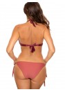 Costume de bain deux pièces en tissu italien Carvico Tessuti. Le soutien-gorge se noue au dos et au cou. Le soutien-gorge fronce les seins des côtés jusqu'au centre du décolleté. Bonnets renforcés avec inserts push-up non amovibles. Culotte lisse, doublée, nouée sur les côtés. En taille 44, pas d'inserts push-up.