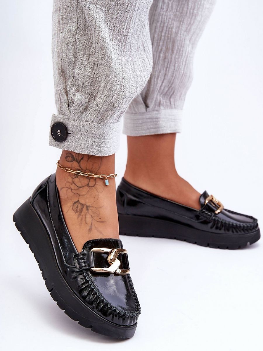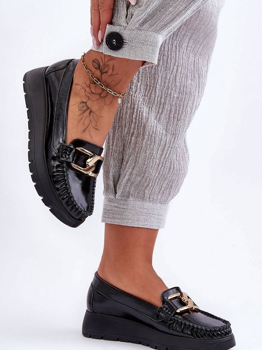Ces mocassins pour femme ont été fabriqués en cuir naturel avec le souci du détail. Ils sont décorés sur le devant. Le contrefort du talon de ces chaussures a été renforcé, ce qui permet une bonne stabilisation du pied. Les mocassins sont montés sur une délicate semelle compensée et une plateforme. Découvrez les autres modèles disponibles sur notre site web !