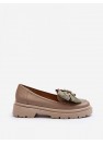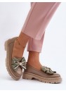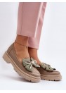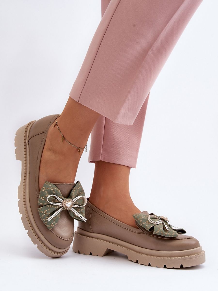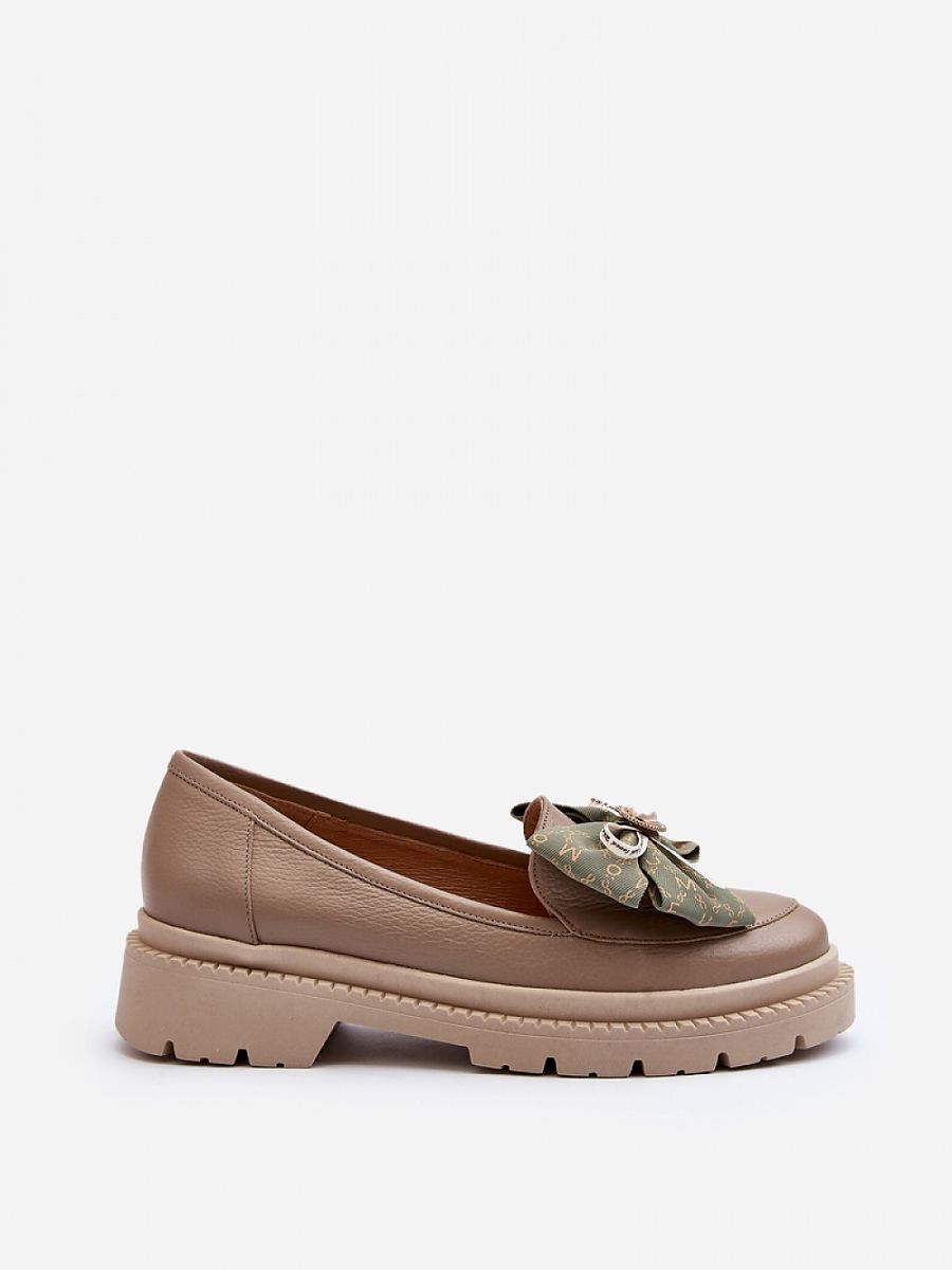 Mocassins pour femme en cuir naturel. Décorés d'un gros nœud sur le devant. Montés sur un talon plat. Bout arrondi. La semelle intérieure en cuir souple assure le confort d'utilisation. Cette coupe très tendance s'accordera parfaitement avec de nombreux styles printaniers !