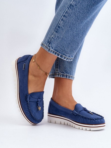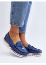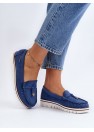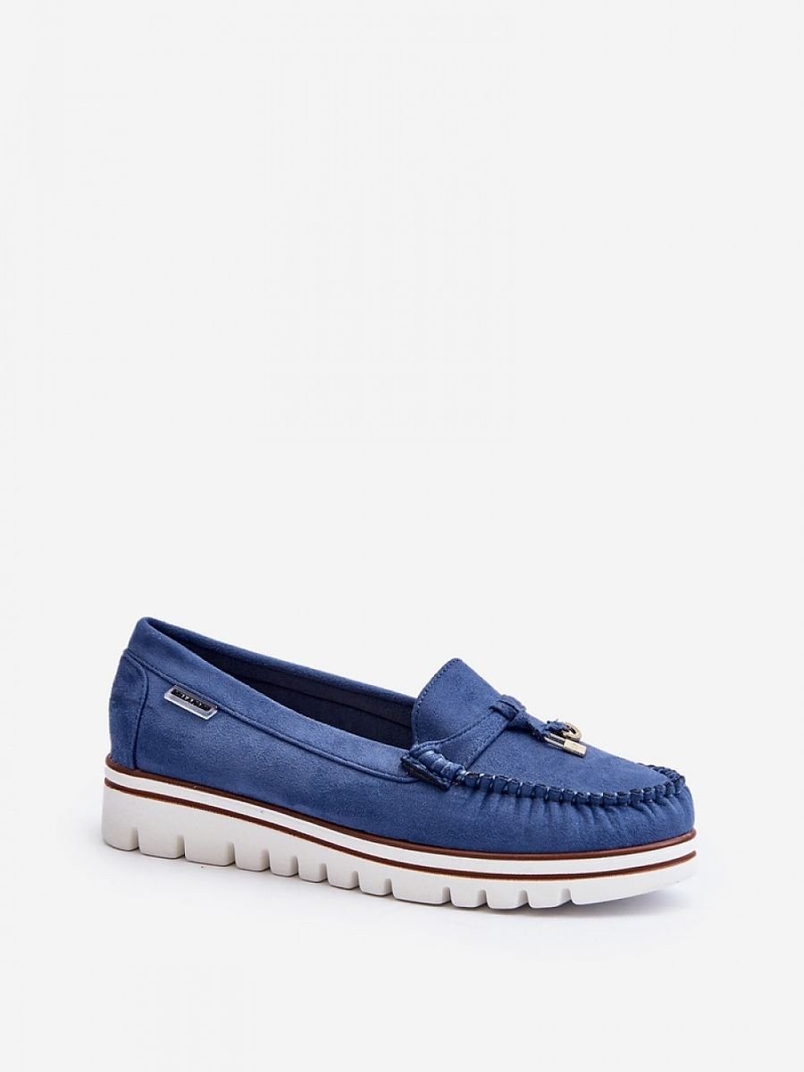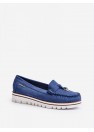 Mocassins pour femme en suédine écologique. Montés sur une plateforme. Bout arrondi. Ce modèle est doté d'une semelle intérieure souple en cuir naturel, qui assure le confort de la chaussure. Petits clous sur le devant. Coupe classique qui s'associera à de nombreuses tenues printemps-été !