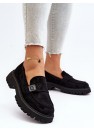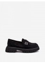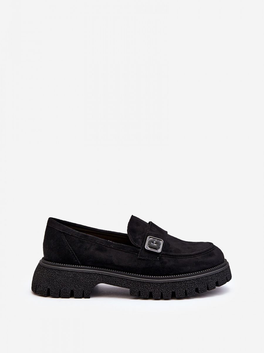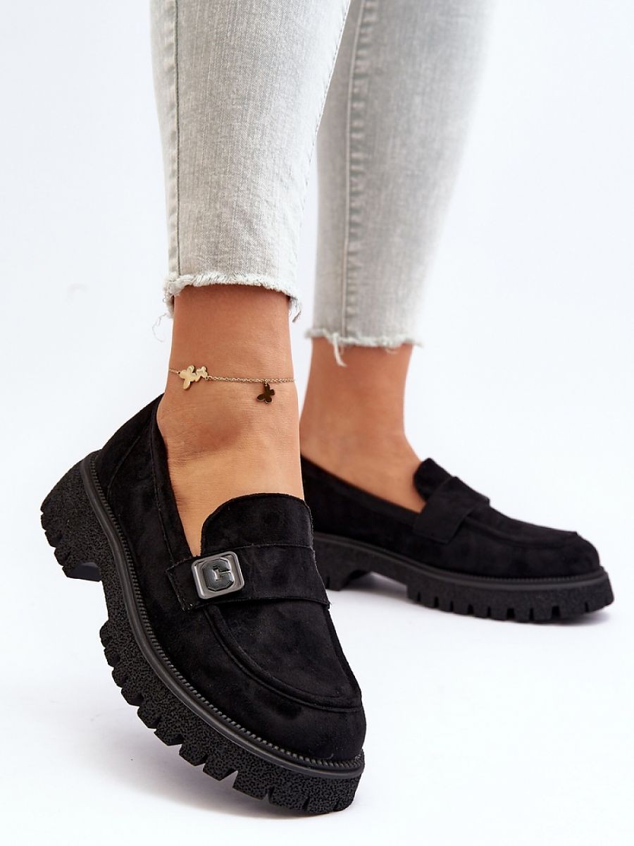 Mocassins élégants en suédine écologique. Montés sur un talon massif et plat. La semelle à rainures isole parfaitement des irrégularités du sol. Devant décoré d'une lanière. Bout arrondi. Parfait pour diverses tenues printanières !