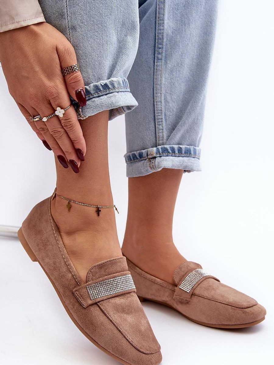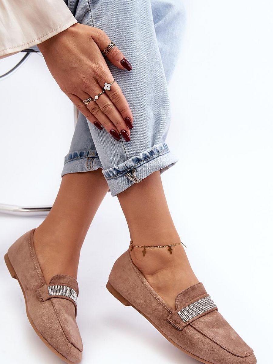 Mocassins pour femme en suédine écologique. Talon plat. Bout arrondi. Nombreux petits zircons sur la bride avant. Semelle intérieure en cuir eko souple et profilé pour un confort tout au long de la journée. Les mocassins élégants sont un élément essentiel de la garde-robe d'une femme ! A ne pas manquer !
