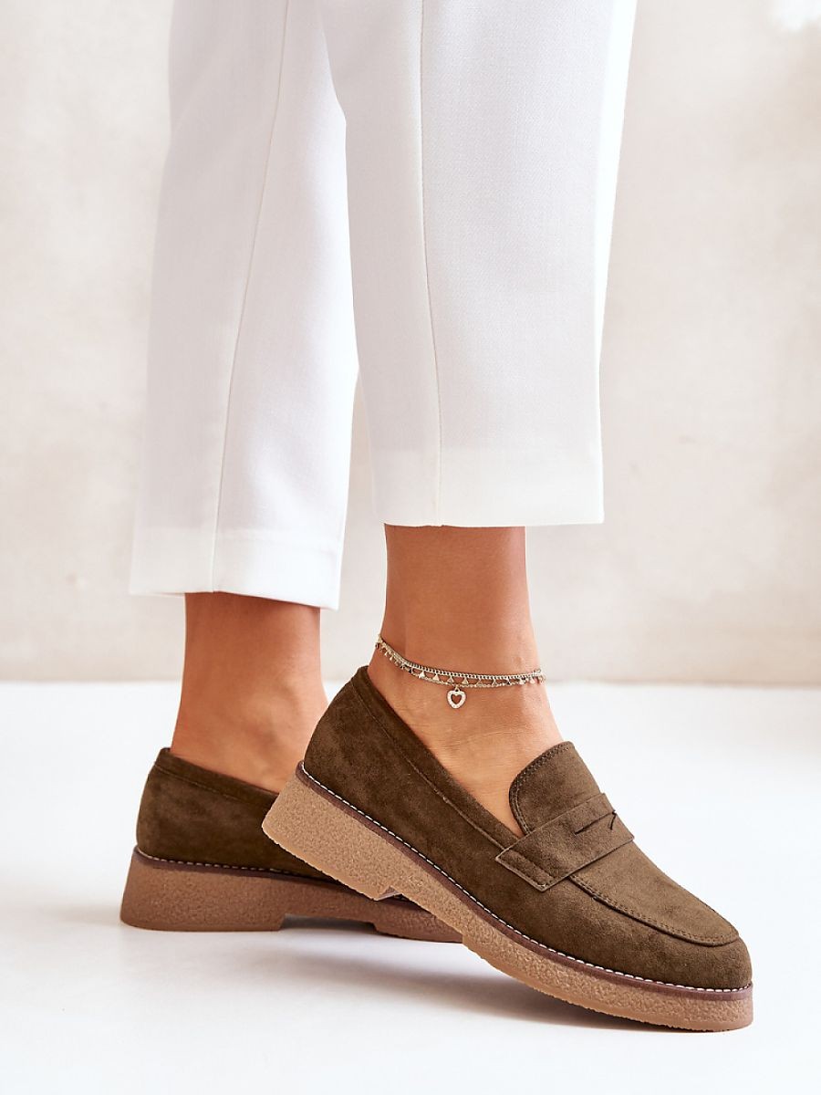 Mocassins pour femme en éco-suède, ils sont non seulement élégants mais aussi agréables à porter. Monté sur un talon plat. Bout arrondi. L'avant est décoré d'une lanière avec une petite découpe. Leur coupe classique leur permet de s'intégrer parfaitement à de nombreuses tenues !