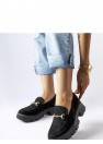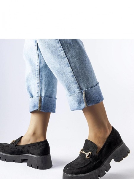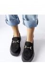 Les élégants mocassins Gaiola sont une excellente proposition pour les journées estivales. Leur couleur noire en fait un complément parfait à toute tenue estivale. La boucle décorative et les zircons ajoutent un caractère unique aux chaussures, tandis que le bout en amande leur donne de la délicatesse. Fabriqués en cuir écologique de haute qualité, ils offrent un confort de port optimal. Parfaits pour les tenues décontractées ou plus formelles. La fermeture éclair facilite l'enfilage. La semelle en caoutchouc durable assure stabilité et confort. Ces mocassins seront un excellent choix pour les femmes qui apprécient la mode et le design moderne.