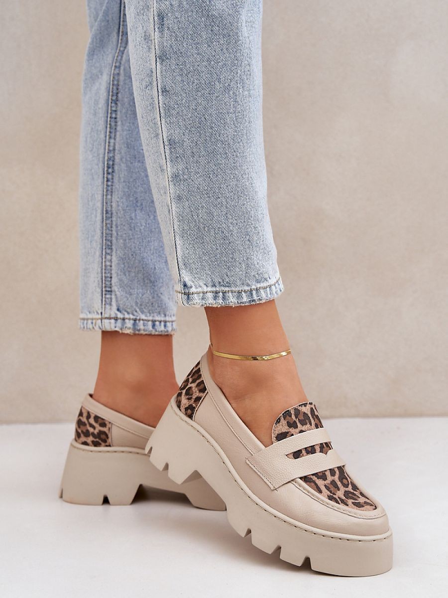 Les mocassins pour femmes en cuir naturel sont une proposition élégante et stylée pour toutes les occasions. Montés sur une plateforme et un talon massif et plat, ils offrent confort et stabilité toute la journée. Les bouts arrondis leur donnent un caractère subtil, et la sangle décorative avec une découpe à l'avant ajoute une touche moderne. Ces mocassins allient élégance et confort, en étant un excellent choix pour différentes tenues.