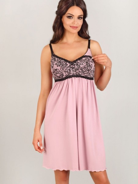 Romantique et élégante, cette chemise à fines bretelles en rose et noir trouvera certainement sa place dans la garde-robe de toutes les mamans. Ce modèle est conçu pour les femmes enceintes, ce qui est facilité par la coupe de la chemise. Après l'accouchement, la chemise sera parfaite pour l'allaitement grâce aux bonnets détachables pratiques.
