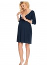 Chemise de nuit de maternité avec guipure et nœud décoratifs. Encolure enveloppante pour faciliter l'allaitement. Peut être porté également après la grossesse. Chemise à manches 3/4.