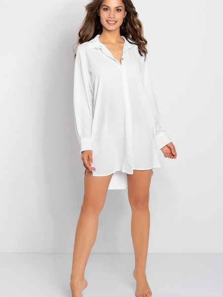 Chemise de nuit à manches longues avec une fermeture à boutons. Chemise à coupe ample en tissu doux et agréable au toucher. Produit polonais.