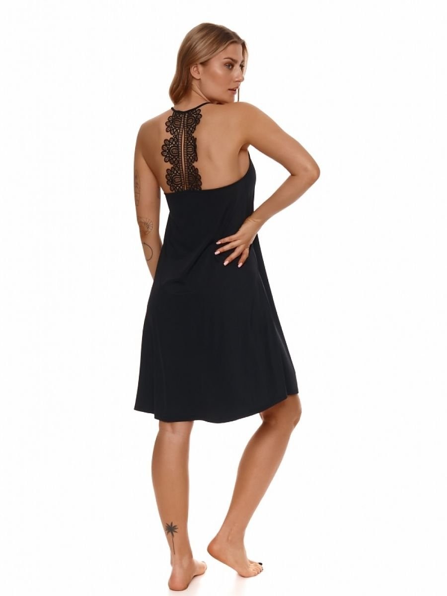 Une chemise noire, classique mais élégante, idéale pour les femmes qui apprécient le chic et le confort en un. Lisse, évasé sur le devant, longueur au genou. Des bretelles réglables, associées à une guipure dans le dos, qui donne à l'ensemble un caractère unique.