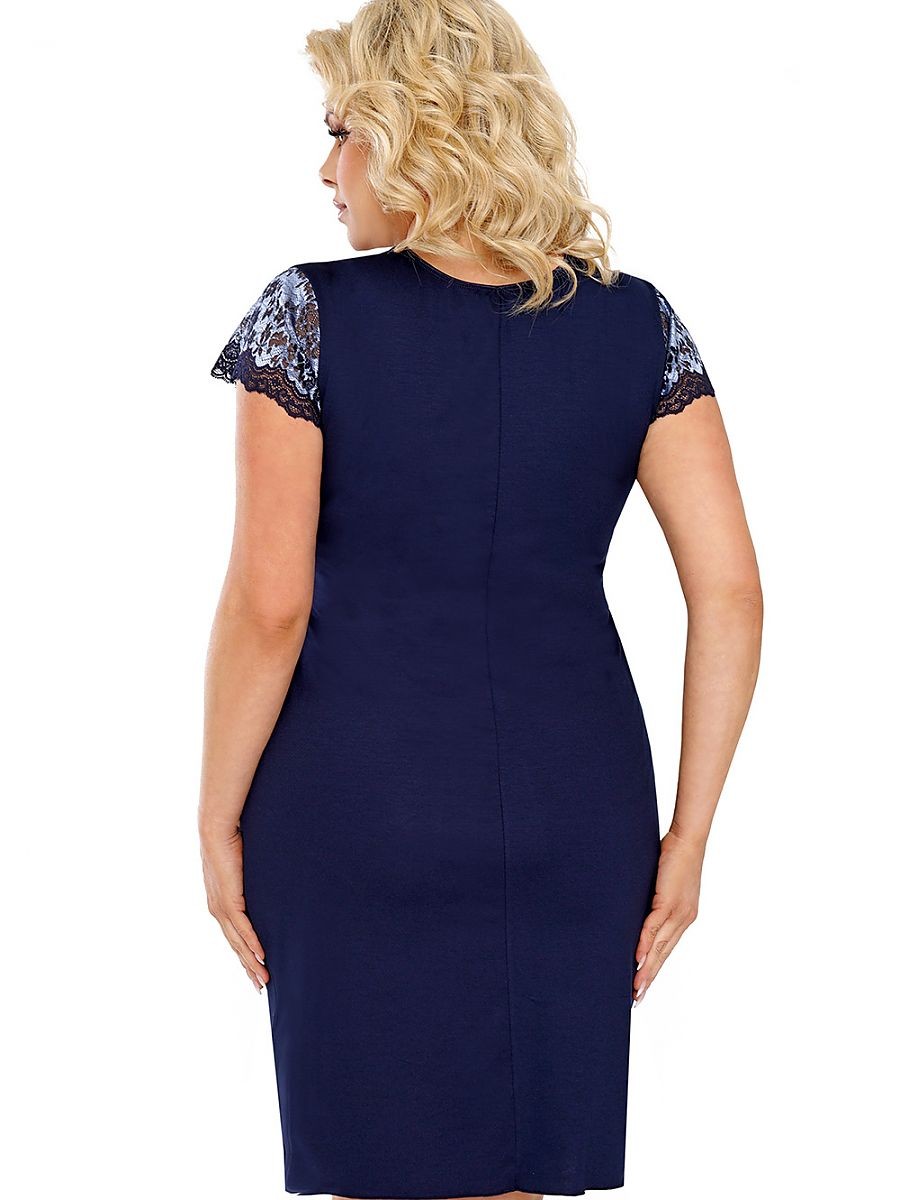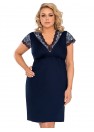 Une nuisette grande taille DEBORAH à la fois élégante et mystérieuse. La nuisette est montée sur de larges bretelles qui maintiennent bien le buste. Le décolleté est profond et décoré de dentelle bleu argenté chatoyante. Les manches sont amples, également en dentelle fine. Le tissu enveloppe délicatement le corps et descend jusqu'au genou. Fabriqué en Pologne.