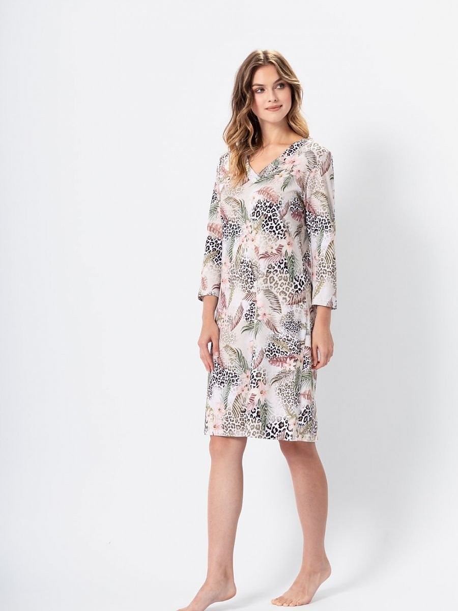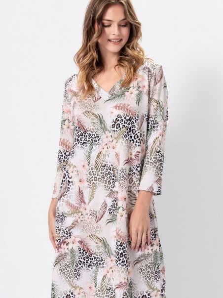 Goûtez au luxe et impressionnez par votre style ! Lorsque vous porterez notre dernière création, la chemise Cyntia, vous sentirez qu'il s'agit d'un modèle haut de gamme ! Elle est fabriquée en 100 % coton raffiné, extrêmement doux et aéré. Il s'agit d'un tissu tricoté avec une belle combinaison de couleurs de grandes fleurs avec un accent léopard, qui ravira plus d'une amatrice de mode. La chemise a des manches 7/8 et une encolure avec un délicat bout pointu, qui allonge optiquement l'encolure, ajoutant une légèreté et une féminité exceptionnelles à cette composition. Sa longueur atteint les genoux. Non seulement vous vous sentirez exclusive dans cette robe, mais après une dure journée de travail, elle vous apportera un maximum de confort et une commodité bien méritée. Et le matin, vous vous lèverez de bonne humeur, prête à relever de nouveaux défis. La chemise Cyntia est une proposition qui ajoutera du glamour à votre garde-robe de nuit.