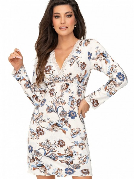 La chemise de nuit à manches longues pour femmes Naomi, en fine viscose à fleurs, est le choix idéal pour les femmes qui apprécient la combinaison du confort et de l'élégance. Ce modèle est doté de manches longues pour plus de chaleur et de confort pendant les nuits les plus froides. L'encolure en V, ornée d'une délicate dentelle, ajoute un charme subtil à l'ensemble. De plus, l'élastique sous le buste assure un ajustement parfait à la silhouette, mettant en valeur les courbes féminines. Cette chemise de nuit est une combinaison de fonctionnalité et d'esthétique, parfaite pour toute sortie nocturne.