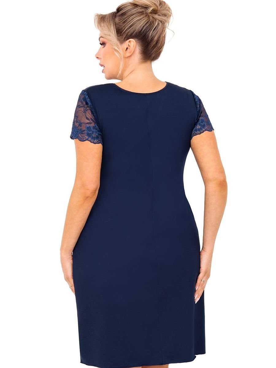 Chemise de nuit sensuelle et confortable en taille plus, conçue pour les femmes avec une poitrine plus généreuse. Fabriquée dans un tissu lisse et doux, elle s'adapte parfaitement à la silhouette, offrant un confort de port et mettant en valeur subtilement les atouts de la silhouette. Le modèle avec un décolleté en V, orné de dentelle délicate, met joliment en valeur la poitrine sans armature. La découpe sous la poitrine avec un élastique cousu assure un bon maintien et cache légèrement le ventre, ce qui influence le sentiment de liberté et de confiance en soi. La chemise arrive au-dessus du genou, et le bas est orné d'une bordure décorative, ajoutant légèreté et élégance subtile à l'ensemble. Les manches courtes garantissent également un confort lors des nuits plus chaudes. Modèle emballé dans une boîte élégante, parfait aussi pour offrir en cadeau.