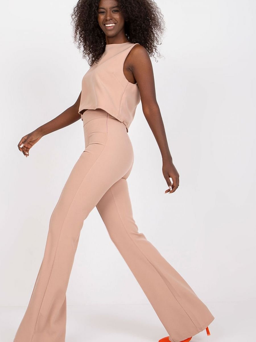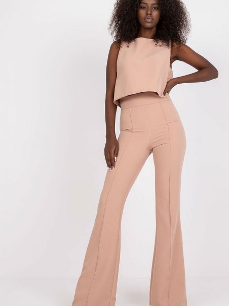 Ensemble élégant composé d'un chemisier et d'un pantalon long. Chemisier court sans manches avec un lien dans le dos. Pantalon long à taille haute, fermé par une fermeture éclair couverte. Un ensemble parfait pour de nombreuses occasions.