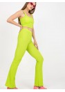 Ensemble composé d'un haut et d'un pantalon long. Top court avec bonnets rembourrés, encolure rectangulaire. Pantalon long à taille haute et jambes larges, avec une ceinture élastique.