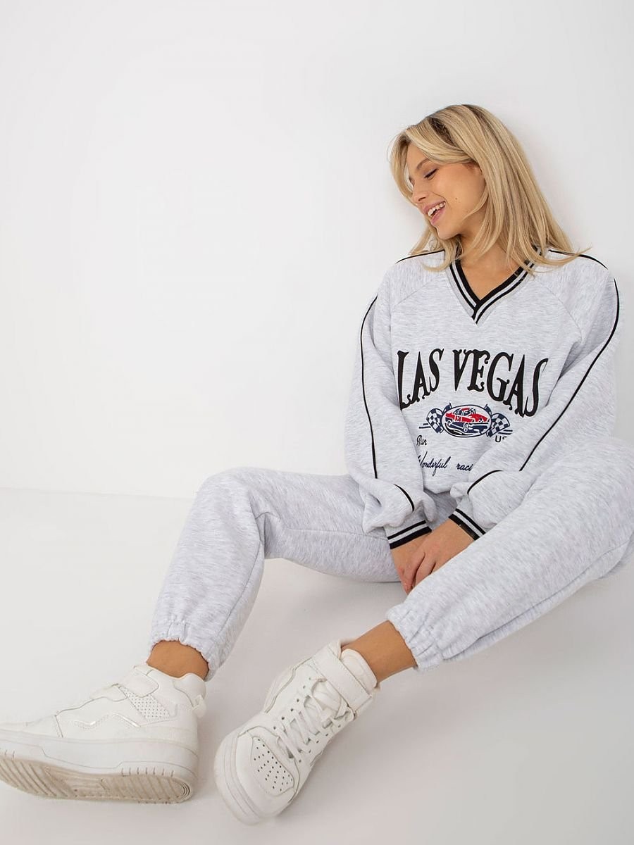 Ensemble de sweatshirt composé d'un sweat-shirt et d'un pantalon. Chemisier à manches longues et col en V. Pantalon long avec lien à la taille et poches coulissantes.