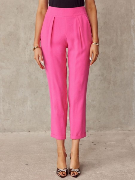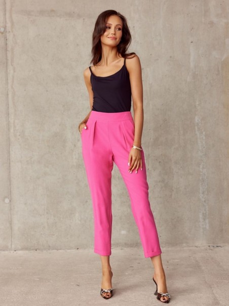 Ce pantalon élégant présente des jambes droites terminées par un léger revers. Il est ainsi extrêmement élégant, même lorsqu'il est accompagné de baskets. Il présente des poches coulissantes obliques sur les côtés et une fermeture à glissière latérale. Il est disponible en couleurs unies, ce qui ajoute à son style intemporel. Fabriqué dans un tissu lisse avec une coupe classique. Le produit est fabriqué et cousu en Pologne.