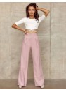 Pantalon long et large à fond cloche, doté de poches coulissantes inclinées et d'une fermeture zippée couverte sur le côté du pantalon. Fabriqué dans un tissu uni de haute qualité. Taille haute qui affine optiquement la silhouette, avec un top court ou un chemisier délicatement rentré à l'intérieur du pantalon. Ce pantalon ample est idéal pour être porté tout au long de l'année. Le produit est fabriqué et cousu en Pologne.