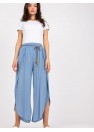 Pantalon féminin aéré avec une taille haute et un lien décoratif à la taille.