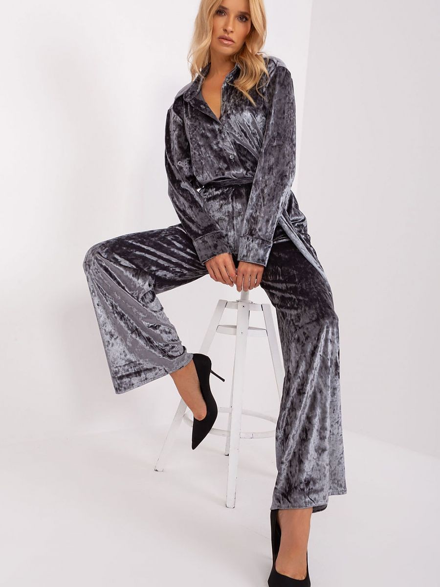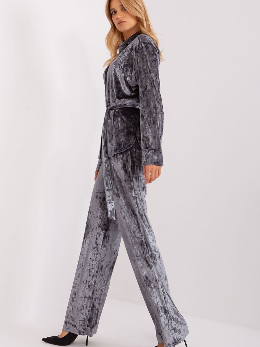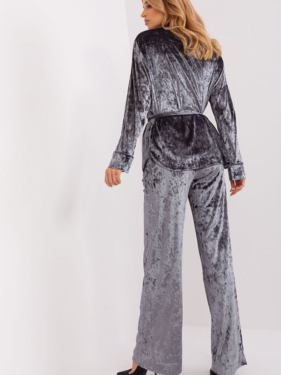 Cet ensemble en velours est synonyme de confort et de style décontracté. La chemise, boutonnée, dégage une impression de décontraction et d'aisance, parfaite pour être portée tous les jours. Fabriquée dans un velours agréable, la chemise offre une sensation de douceur et de décontraction. Le pantalon, également en velours, a des jambes larges, ce qui souligne le caractère décontracté de l'ensemble. La ceinture haute avec élastique assure non seulement un ajustement confortable, mais confère également un look original. En outre, le pantalon est doté de poches latérales pratiques pour ranger les petits objets. L'ensemble est complété par une ceinture à nouer, qui n'est pas seulement un ajout pratique, mais qui complète également le style. Cet ensemble est idéal pour les femmes qui apprécient le confort et la liberté, sans pour autant renoncer à l'expression de la mode, même dans les situations quotidiennes.