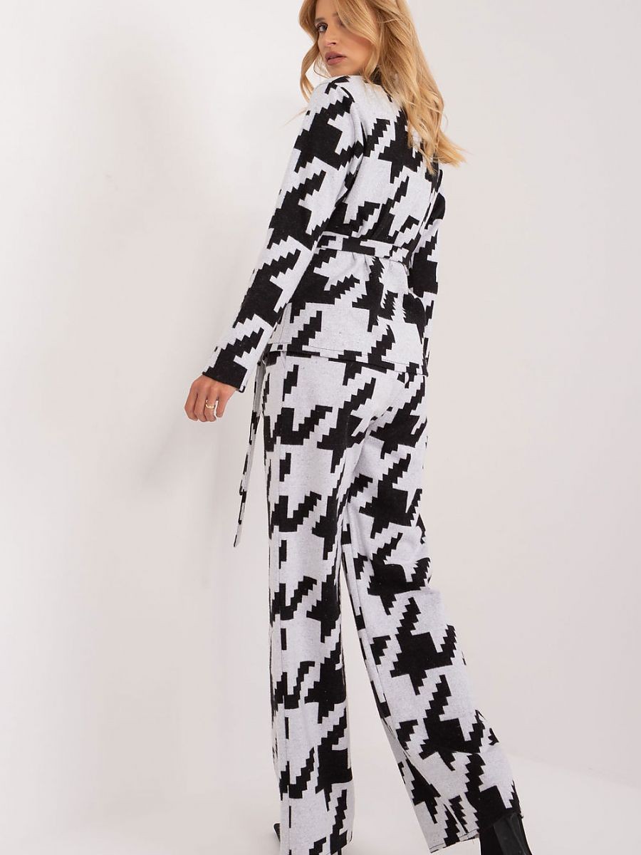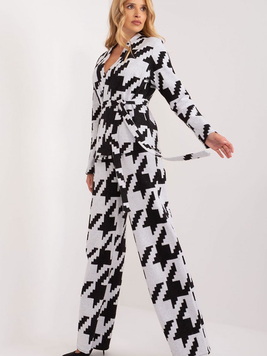 L'ensemble composé d'un pull et d'un pantalon est la solution idéale pour un style décontracté de tous les jours, alliant confort et design à la mode. Fabriqué en coton de la plus haute qualité, l'ensemble offre non seulement un confort mais aussi une sensation agréable au toucher. Le pull à manches longues est élégant et remarquable grâce à son devant enveloppant, qui apporte une touche unique. La ceinture à nouer à la taille permet d'ajuster la circonférence tout en soulignant la silhouette féminine. Le pantalon taille haute n'est pas seulement une pièce à la mode, mais aussi une pièce pratique de l'ensemble. Les jambes droites et les poches à glissière lui confèrent une allure décontractée tout en assurant confort et liberté de mouvement. La longueur standard en fait un choix polyvalent pour une variété d'occasions. Le motif dominant est un élégant péplum, qui ajoute de la subtilité et de la classe à l'ensemble. Idéal pour les situations quotidiennes, cet ensemble décontracté allie parfaitement la mode et le confort, vous permettant de créer un look quotidien élégant et durable.